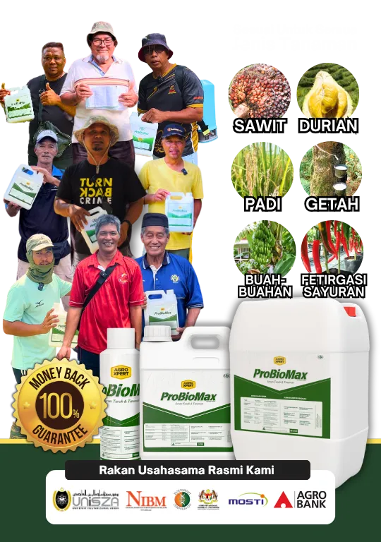 Probiomax memang sesuai untuk pesawah padi, pekebun sayur, peladang sawit, dan penanam buah premium macam durian.