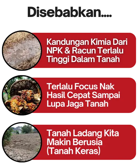 Biasanya dalam 1-2 minggu dah nampak kesan awal: tanah makin elok, pH lebih stabil, dan pokok makin subur. Penyakit tanah pun mula kurang.